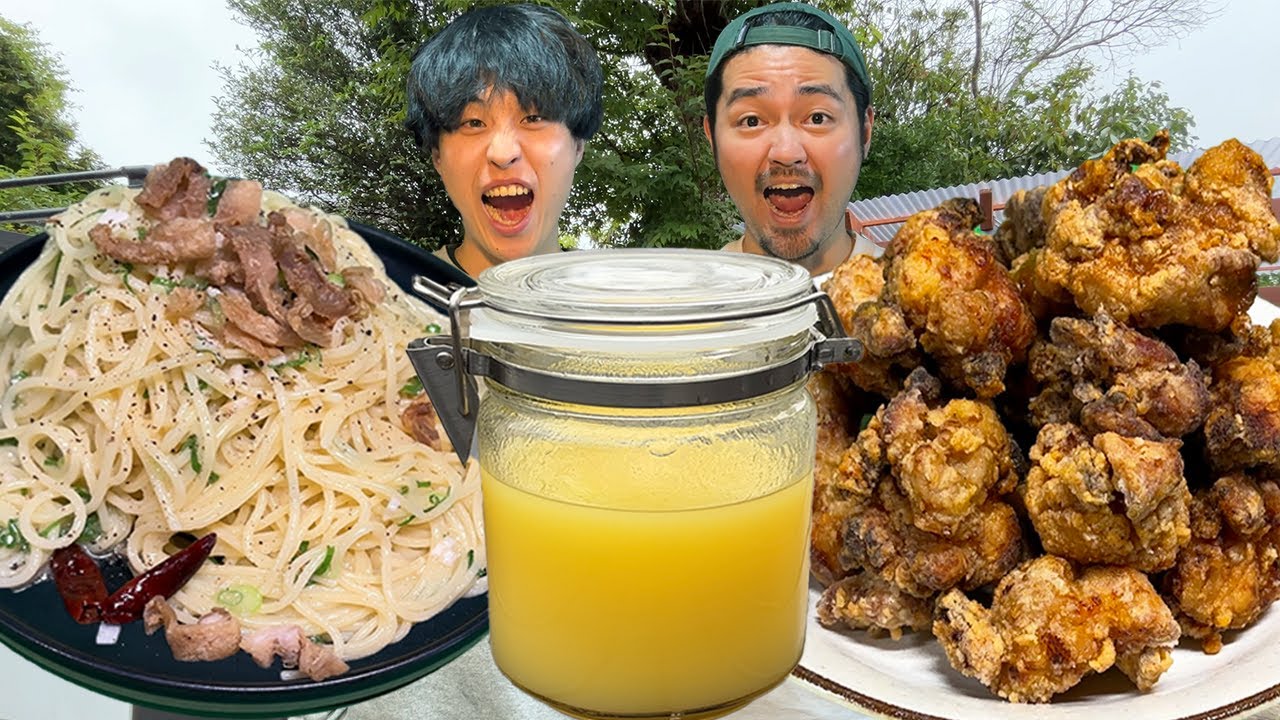 【爆食】鶏皮4kgから鶏油を抽出!究極の唐揚げとパスタが優勝確定!